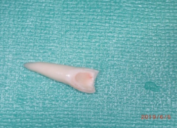 必ず歯冠部を持って拾い上げ乾燥させない。