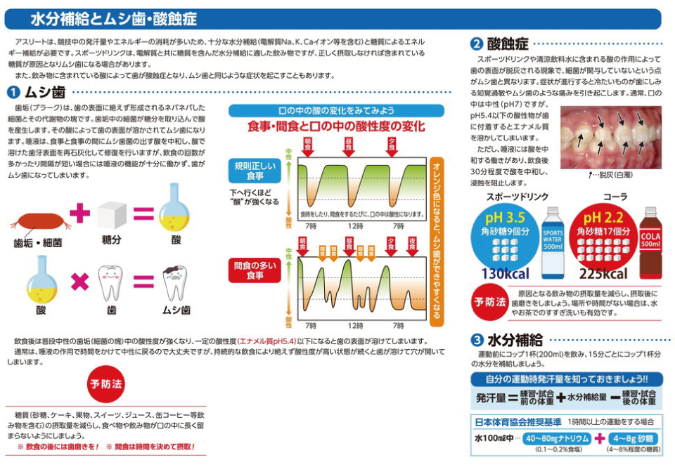 近年、トップアスリートの食事は、競技種目に見合ったカロリー計算の上で、試合前ばかりでなくふだんから提供されるようになってきました。 しかし、同じ量でも流し込むような食事のしかたでは十分に栄養の吸収ができません。 また、いわゆる早食いでは満腹中枢が十分に機能しないうちに、計算された食事以上の物を摂取し、カロリー過多となってしまいます。 その結果、体脂肪率が上がり動きが鈍くなってしまう可能性が出てきます。 減量が必要な選手の場合は、特に気をつけなければいけません。 よく噛んで、ゆっくり食事を楽しむようにとることが、栄養吸収面では大切です。 メダルを獲得するためには、正しい嚙み合わせによる阻嚼によって摂取されたエネルギーが、 運動能力を最大限に発揮するための源となります。 すなわち、健康なロは決して目立つ存在ではないのですが、 スポーツ選手の好成績を支える大切なパートナーであり、カギとなります。